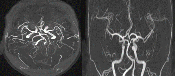 Por su parte, en la angiografía cerebral los hallazgos más comunes son la estrechez difusa de arterias medianas y grandes en SNC con segmentos intermedios de calibre arterial normal, usualmente con compromiso bilateral, difuso y con afección principal de la circulación anterior y posterior14.