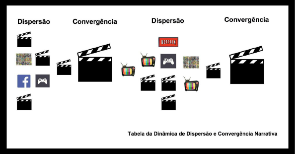 Este conceito poderia ser visto como uma ciência em movimento, uma estrutura viva, que podemos entender, aplicar e principalmente, adaptar. A partir deste pressuposto, tentamos imaginar a narrativa transmídia aplicada de maneira infinita, constante, sem qualquer previsão de conclusão. Portanto, poderia receber outras derivadas conceituais ou até mesmo um desdobramento. O seu desdobramento vem com a finalidade de entender as questões propostas neste artigo, necessário para dar conta do Universo Cinemático Marvel, visto que se trata de um objeto único de análise neste gênero. Por se tratar de uma narrativa gigantesca e que ainda não se imagina como será concluída ou se será efetivamente concluída, pensamos em adaptar o conceito para Dinâmica de Dispersão e Convergência Narrativa.