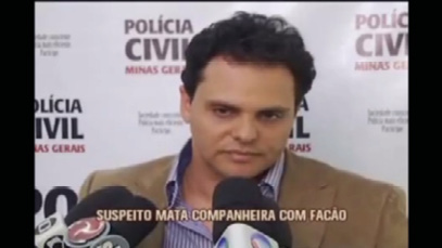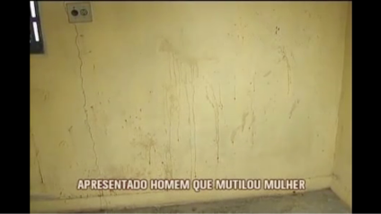 O relato do telejornal tem duração de 2min12s. Desde o início a notícia é apresentada através, por exemplo, de chamadas dramáticas que aparecem na parte inferior da tela: “apresentado homem que mutilou mulher” (figura 5), “suspeito mata companheira com facão” (figura 6) e “mulher é morta na frente das filhas” (figura 7).O relato começa pela prisão de Rafael, mas logo foca nos detalhes do crime, já apresentando a fazenda em que eles moravam e fazendo das manchas de sangue no chão e nas paredes uma parte constituinte da apresentação da casa em que Kênia foi atacada. A seguir, a fala do delegado dá detalhes de como o companheiro de Kênia a agrediu, começando com o pedaço de pau, quebrando seu braço e partindo para o esfaqueamento e a mutilação com o facão, inclusive descrevendo como uma de suas mãos e a orelha ficaram presas “por um fio de pele”, o que leva a narrativa para a caracterização de uma cena de horror. As imagens da casa em que Kênia e Rafael moravam são mostradas, assim como o quarto onde ela foi agredida e onde as crianças se esconderam durante a briga. Conta-se da trajetória de meio quilômetro enfrentada pelas filhas de Kênia para buscar ajuda e imagens mostram o percurso (figura 7).
