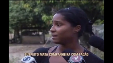 Já na reportagem do JA expõem-se sem pudor tudo e a todos – com exceção das crianças – que a cena do crime envolve, buscando alinhar o auditório com o sofrimento da “vítima”. A irmã, a vizinha, o criminoso, o repórter, a câmera que vasculha o ambiente, todos são enredados em um processo de textualização de tom confessional, que expõe a vida pessoal da mulher assassinada, julga as circunstâncias em que tal ocorreu, mas é indiferente àquilo que ultrapassa a morte de Kênia: sua memória, suas filhas. A mulher assassinada não tem obviamente a opção acerca da exposição de sua vida, mas o relato é de teor conclusivo e a narrativa se apresenta aí como uma forma do jornalismo impor as referências com as quais se dimensionará o episódio, de produzir as evidências do acontecimento “monstruoso” que acaba de ocorrer. Nesse sentido, a estratégia do “estar ali” do repórter, como o recolhimento de pistas da comoção dos envolvidos, institui uma cena do acontecimento que a primeira vista parece “testemunhar” o ocorrido, de “vê-lo de dentro”. Mas o que conduz o relato não são perguntas e sim uma tentativa de sancionar o ocorrido, de tomar a violência contra a mulher como algo passado, circunscrito a um evento que não mais existe. O acontecimento da morte da faxineira “está perdido”, resta jornalisticamente a sua substituição pela narrativa, que se apresenta como um texto de formato familiar sobre uma ocorrência vista como monstruosa.