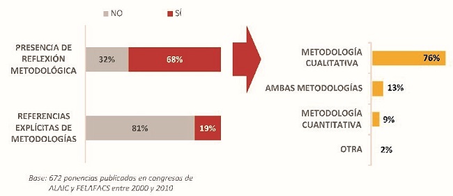 Este bloque se focaliza en una parte de los resultados que arrojó nuestra investigación sobre la dinámica de las prácticas teórico-metodológicas en las reuniones científicas de ALAIC y FELAFACS (2000-2010). Abordamos dichas prácticas desde la perspectiva de su comunicación científica, es decir, de su discursividad, en un sector del sistema de la ciencia donde una parte substancial de la producción académica, procedente de universidades, agencias, centros y grupos de investigación, adquiere visibilidad y legitimidad. Por restricciones de espacio incorporamos una parte reducida del trabajo de investigación que lo solventa (Moyano, 2016), centrándonos en los ítems principales que retomaremos en las conclusiones.