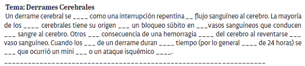 Otro aspecto metodológico de Cloze, que se ha discutido frecuentemente, se refiere a cuáles deben ser los criterios utilizados a la hora de corregir o puntuar estas pruebas. La mayor parte de los estudios al respecto se han centrado en investigar si existen diferencias en los resultados de los sujetos en función de que se consideren como respuestas correctas únicamente aquellos reemplazamientos idénticos al texto original o a que se admitan como correctas las palabras sinónimas al texto original (Taylor citado por Artola, 1991). La figura 5 presenta un ejemplo básico de la prueba Cloze adaptada al campo de la comu- nicación en salud.