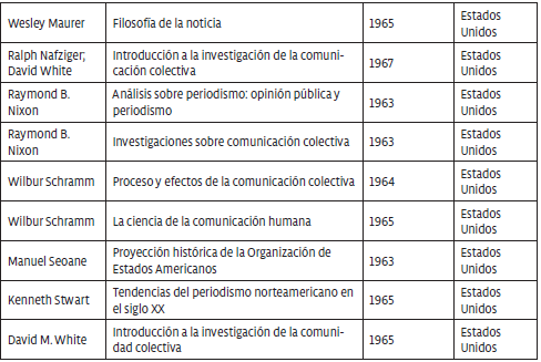 Muitas dessas publicações traziam indicações de como as pesquisas na área da Comunicação deveriam ser realizadas, e tinham nas ideias da Mass Communication Research (MCR) sua principal fonte, especialmente em autores como Schramm, Lasswell, Berlo, Lazarsfeld, Berelson e outros (Teoría, S/D; Marques de Melo, 2009; Navarro, 2005).