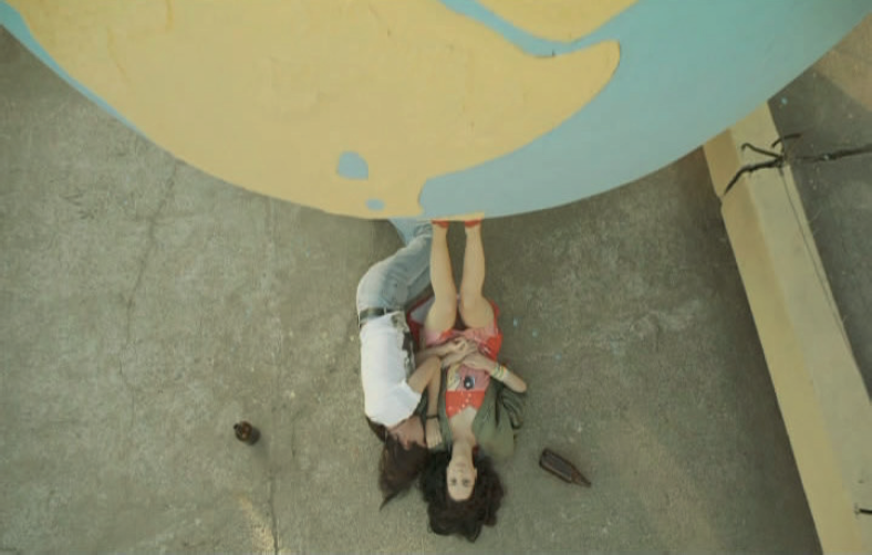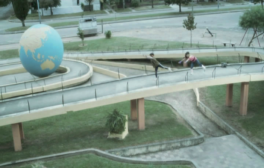 “Días de coreografías” revisita, a través de fotografías, los momentos de la infancia feliz, gracias al baile –elemento máximo de expresión–, de Natalia y Carlos y, produciendo un contraste irónico, a sus sufrientes madres. Al finalizar el clip, la imagen de Carlos y Natalia invertidos: “No te preocupes, Carlos. Cuando cumpla 18 años voy a ser coronada Miss Tacuarembó. Y, algún día, el mundo será nuestro”. La cámara se aleja y muestra los pies de Natalia sobre el globo terráqueo. Esta imagen se repite dos veces en el relato y concentra buena parte del sentido de la película. La niña está cabeza abajo pero con los pies apoyados en la tierra: quizá sus problemas impliquen una cuestión de perspectiva o bien precisen invertir el mundo.