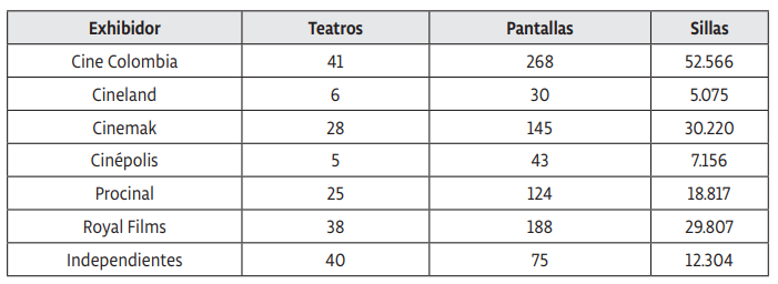 En el 2014, Colombia tenía 870 pantallas de exhibición que permitieron el estreno de 274 películas a las que asistieron un total de 46.526.192 personas. En las taquillas se recogieron 384 miles de millones de pesos colombianos, cerca de 200 millones de dólares. (Proimagenes Colombia, 2014)