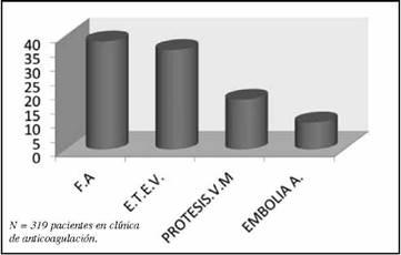 Trescientos diez y nueve pacientes cumplieron los criterios de inclusión y asistieron a la clínica de anticoagulación del 1°. de enero de 2011 a 29 febrero de 2012. Las características generales se observan en Tabla 1.