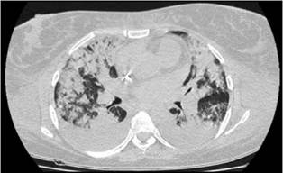 La infección por VZ se puede manifestar de forma severa en pacientes inmunocomprometidos, prueba de ello son los trasplantados, con infección por el VIH (virus de inmunodeficiencia humana), uso crónico de esteroides, deficiencia y alteración de la inmunidad, especialmente la celular. Existen pocos casos en la literatura con compromiso multisistémico en paciente inmunocompetente. En el caso presentado se documentó neumonía como parte de las manifestaciones iniciales. La presencia de neumonía es una complicación común incluso en pacientes previamente sanos, donde el tabaquismo, sexo masculino, embarazo, edad avanzada y el severo compromiso vesicular cutáneo se describen como factores de riesgo 4,5. La incidencia de neumonía por varicela es de aproximadamente 1:400 casos siendo la primera causa de morbilidad y mortalidad alcanzando hasta 50% en pacientes en ventilación mecánica. En muchos casos la neumonía por varicela presenta mínimos síntomas pulmonares siendo la tos seca la de mayor frecuencia y existen pocos casos como el descrito donde se presenta SDRA. En los pacientes con neumonía por VZ el uso temprano de antiviral se ha relacionado con mejoría significativa de la oxigenación, fiebre y taquipnea 6,7.