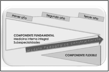 Según el análisis documental de algunos programas de medicina interna, el perfil actual de formación de los MR, futuros internistas del país, está previsto por objetivos y contenidos fragmentados en un plan de estudios; por tanto, el modelo pedagógico vigente de esta especialidad médica es academicista y enciclopedista porque fragmenta la realidad de la medicina interna en un sinnúmero de especialidades y contenidos; incluso, algunas veces, proponen al MR opciones controversiales para crear las soluciones a los problemas de un paciente; es decir, no se le brinda al MR un espacio, en lugar y tiempo, para integrar el conocimiento, las habilidades y las actitudes; tampoco está explícito el desarrollo de CP con el apoyo de equipos interdisciplinarios conformados por expertos en ciencias básicas y ciencias clínicas, en las cuales se fundamenta el desempeño profesional que implica "la existencia de una o más competencias" profesionales. Sin embargo, se infiere que de forma empírica la formación se encuentre centrada en las CP específicas clásicas o clínicas para brindar la atención y el cuidado al paciente, con un modelo pedagógico tradicional y centrado en el "saber conocimientos médicos" y "el saber hacer"; no obstante, se han adelantado actividades para desarrollar CP transversales en investigación y, además, en algunos programas, se organizan algunos módulos teóricos para las demás CP transversales emergentes.
