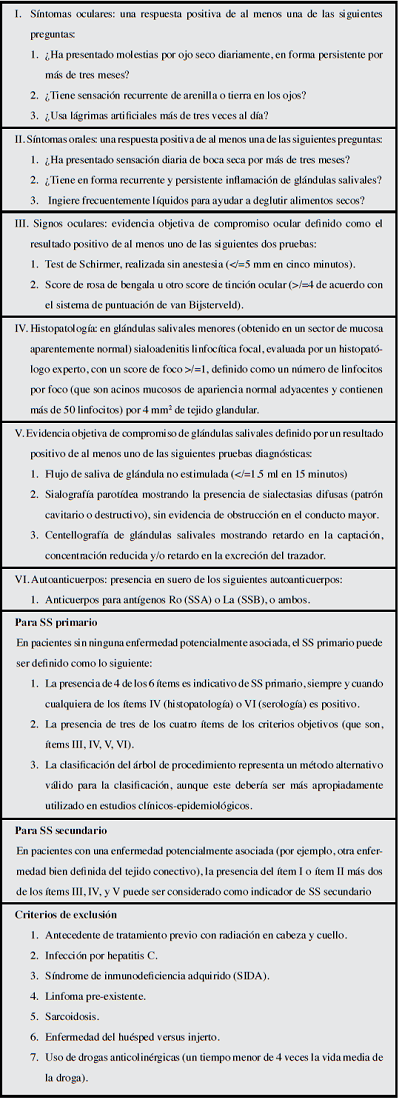 6. Vitali C, Bombardieri S, Jonsson R, Moutsopoulos HM, Alexander EL, Carsons SE, et al. Classification criteria for Sjögren's syndrome: a revised version of the European criteria proposed by the American-European Consensus Group. Ann Rheum Dis. 2002; 61(6): 554-8.