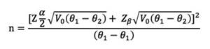 La aproximación convencional al cálculo de tamaño de muestra para modelos predictivos define un valor entre 5 y 20 desenlaces por cada variable independiente. Sin embargo, para la indicación específica de comparación de modelos predictivos no existe evidencia que sustente la anterior consideración, aunque algunos autores sugieren un número similar de desenlaces y no desenlaces. Dado que el objetivo general del presente estudio partió de la hipótesis de una mayor exactitud de una escala versus la otra, se tomaron como referencia los valores originales de áreas bajo la curva ROC (AUC-ROC) de los dos modelos CRUSADE (0.70) Y ACTION (0.74). Para probar diferencias entre dos áreas bajo la curva (AUC-ROC), se utiliza la fórmula de Hanley-Mc Neil y Obuchowsky-Mclish, para la cual se eligieron en este estudio una probabilidad de error tipo I de 0.05, potencia de la prueba de 0.8 y correlación entre las dos escalas de 0.84. La ecuación utilizada fue: