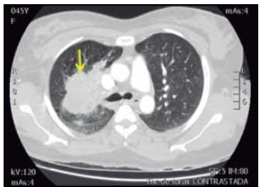 Mujer de 45 años de edad, índice de Karnofsky de 70%, exfumadora pesada con índice de 25 años/paquete que suspendió hace un año, sin exposición al humo de leña, con antecedentes de radiculopatía en raíces nerviosas en L4-L5-S1 que requirió bloqueo selectivo de L4-L5, tubectomía hace varios años, gestaciones seis, partos seis, abortos cero; última citología de cérvix uterino de hace dos años sin anormalidades, con irregularidades menstruales desde hace tres meses, antes tenía ciclos regulares 28/5. Sus antecedentes familiares eran hipertensión arterial y diabetes mellitus tipo 2.