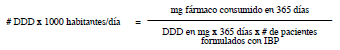 Para el cálculo del costo del consumo de IBP se usó la Dosis Diaria Definida (DDD) por 1000 habitantes por día (DHD). Se calculó a través de la siguiente fórmula: