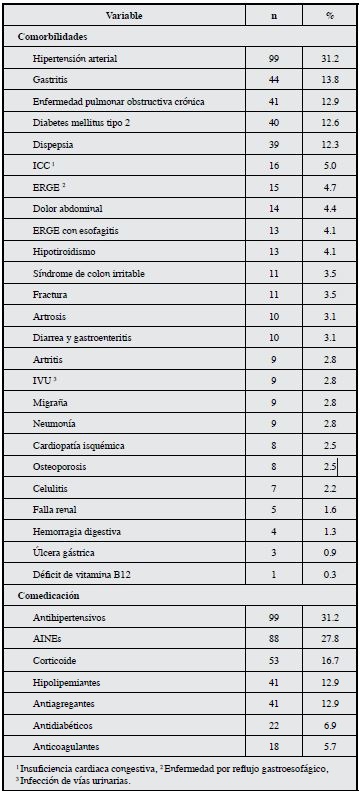 Las principales comorbilidades presentes en la población se agrupan en patologías crónicas y relacionadas con la enfermedad ácido-péptica. La comedicación y comorbilidades presentes en los pacientes del estudio se describen en la Tabla 2.