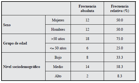 Es difícil hallar significancia estadística en muestras pequeñas; sin embargo, se realizaron análisis bivariados en los que no se encontraron diferencias estadísticamente significativas entre el sexo, edad y nivel socioeconómico.