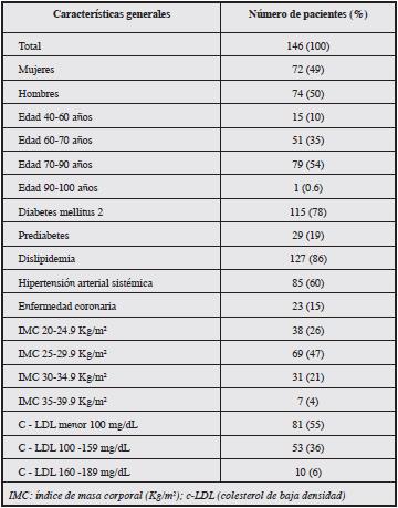 Sample size. The sample studied included 146 patients with DM2 and/or prediabetes and/or dyslipidemias who were treated at the Health Services Unit of the National University of Colombia (Unisalud) and participated in a program for the prevention of complications of diabetes mellitus and dyslipidemia offered by the Faculty of Medicine of the National University of Colombia. Patients attend periodically (every three months) under medical supervision at the School of Medicine.