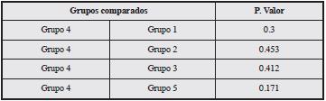 The results for group 4 (subjects with good metabolic control, without coronary heart disease and without PAD) were compared with those of the other groups, and no significant differences were found (Table 3).