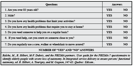 If the respondent had 3 or more “YES” answers, this indicates a greater risk of frailty.