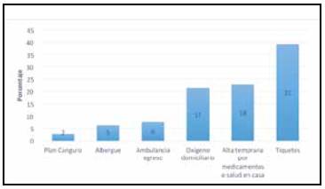 Otras causas sumaron 16.5%: correspondientes a solicitud de ambulancia para el egreso, la cual era necesaria para trasladar pacientes que por su condición crítica no podían realizar viajes en transporte público o incluso privado. Albergues u hogar de paso, indicada como opción para grupos de pacientes cuya procedencia sea lejana y necesitaban terminar un tratamiento, por ejemplo radioterapia, quimioterapia y plan canguro en recién nacidos pretérminos.