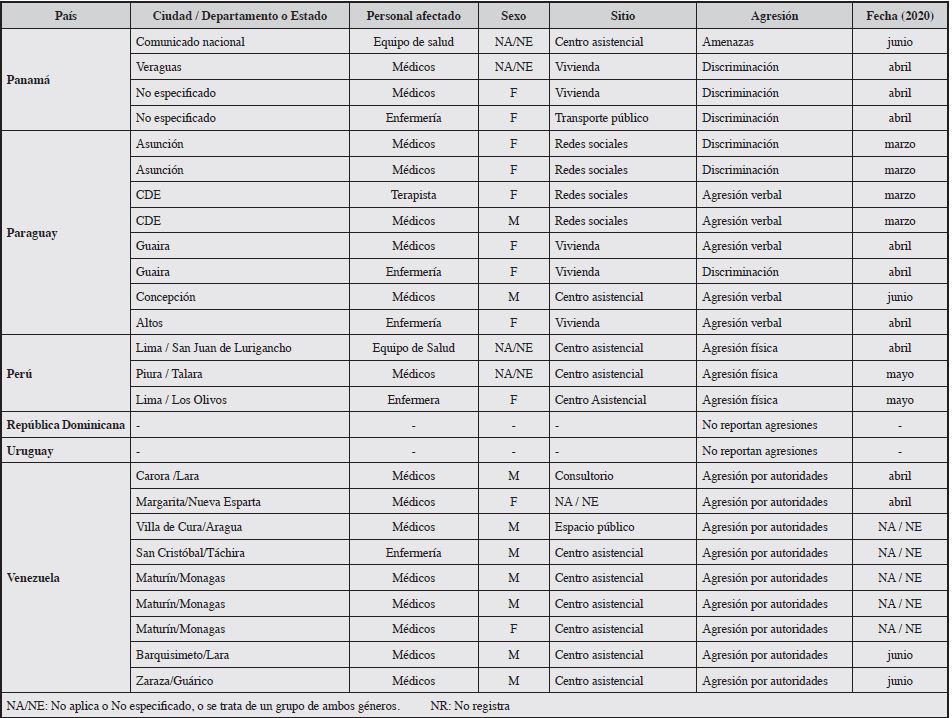 Por el contrario, y de manera afortunada, encontramos que otros países como Cuba, Guatemala, República Dominicana y Uruguay no han reportado mayores casos de agresiones o discriminación en contra del personal de salud.