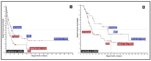 Conclusión: se demuestra aumento claro en la sobrevida con el empleo de temozolamide adyuvante por periodos mayores a seis meses y una tendencia a mejores resultados mientras mayor sea el tiempo de adyuvancia.