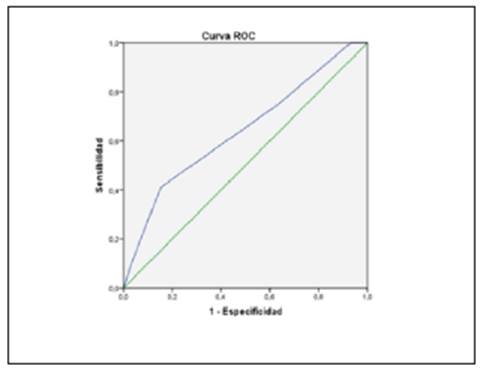Finalmente se calculó para cada paciente el número total de criterios que tenían de la regla de predicción. El área bajo la curva de esta gráfica es 0.64 (IC95%; 0.53-0.75) (Figuras 1 y 2).