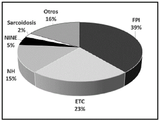 Idiopathic pulmonary fibrosis is accepted as an orphan disease in Colombia 11 and its accurate diagnosis has implications for the patient and for healthcare costs. As there are no studies in Colombia, our objective was to evaluate the impact of an MDG in a quaternary care institution in Bogotá on the change in diagnosis of patients with ILD and IPF.