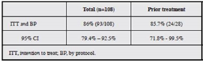 In this study, which, as far as we found, is the first to describe dual therapy for H. pylori eradication in Latin America, we found an overall eradication rate of 86% (95%CI 79.4-92.5%) for both ITT and BP, with no differences in patients who had had prior treatment failure (85.7% 95%CI 71.8-99.5%). The overall results are similar to those found by Hu 19.