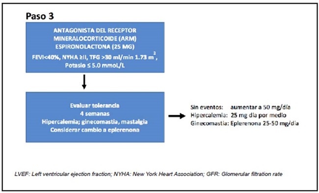The suggestion is to begin in step one with ARNI (Figure 2); the only available one to date is the sacubitril/valsartan combination. In step 2, SGLT-2 inhibitors plus the beta blocker (Figure 3), and, finally, the MRA (Figure 4).
