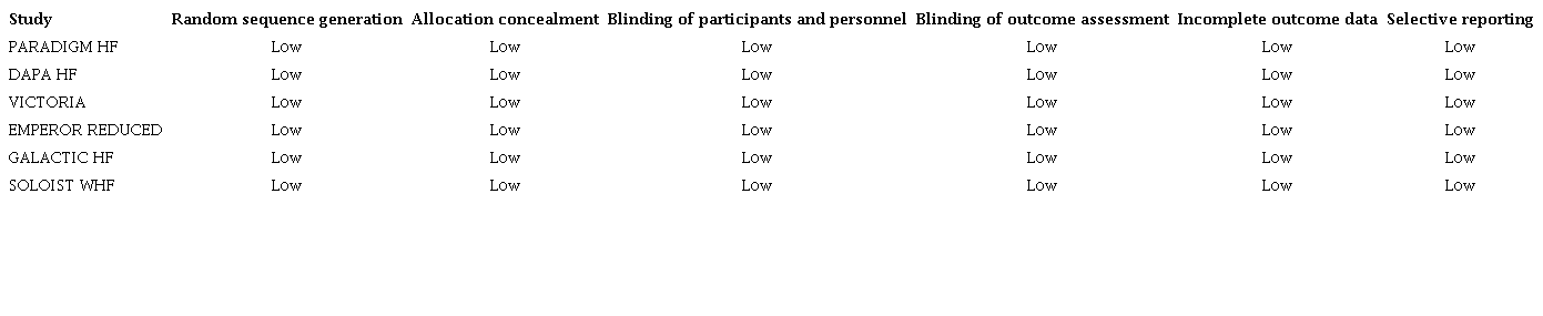 The consistency of studies with ARNI place it as the treatment of choice, replacing ACE inhibitors/ARBs, and reserving these for a few cases, specifically patients who do not tolerate ARNI treatment due to hypotension. Likewise, the SGLT-2 inhibitors, together with the already positioned beta blockers and MRAs complement this first-line therapy. The results with other new medications such as vericiguat and omecamtiv mecarbil are modest and they should be reserved for only a few cases which are not stabilized using standard treatment. The risk of bias was considered to be low in all the items.