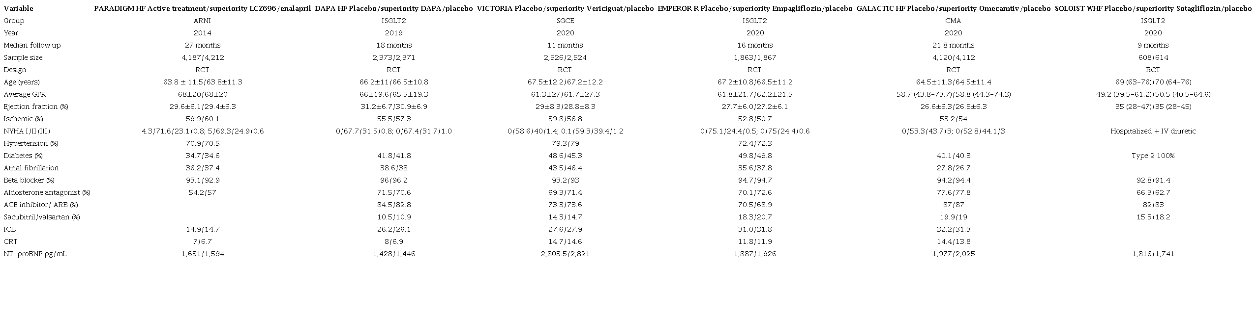 The EMPEROR REDUCED 59 study randomized patients with LVEF <30%, NYHA ≥II, and elevated natriuretic peptides (in cases with LVEF between 30 and 40%, hospitalizations for HF in the previous year or very high peptide levels were also required), despite being on optimal therapy, with a GFR ≥20 mL/min/1.73m2 and SAP >100 mmHg. In this study, empagliflozin proved to be superior at 10 mg/day compared with placebo in decreasing hospitalizations for HF or cardiovascular death (HR 0.75 95% CI 0.65-0.86).