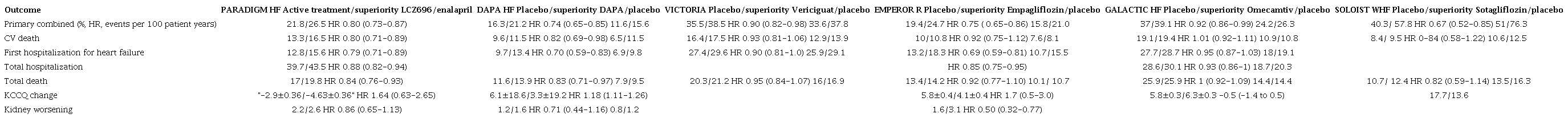 Finally, the SOLOIST WHF study in type 2 diabetic patients with decompensated HF randomly assigned stabilized patients, before or within three days of discharge, to 200 mg of sotaglifozin (increasing to 400 mg, depending on side effects) versus placebo. After a median nine-month follow up, it significantly decreased the combined primary outcome (HR 0.67 95% CI 0.52-0.85). This study offers an interesting perspective by suggesting that early initiation of treatment has important effects and, furthermore, the effect is maintained in patients with an LVEF ≥50%, which suggests a promising effect for patients with HF with a slightly reduced and preserved fraction 60, as suggested by the results of the recent EMPEROR PRESERVED (N Engl J Med 2021 DOI: 10.1056/NEJMoa2107038/10.1056) study.