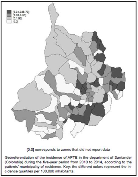 Record of incident APTE cases in the department of Santander, 2010-2014