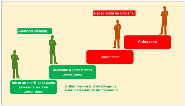 Introduction: urticaria has a high impact on the quality of life of patients with this condition. While there are multiple evidence-based guidelines, these tend to be aimed at providing management recommendations for specialists rather than primary care physicians, who are usually the first to care for patients with urticaria.
