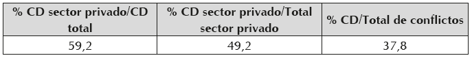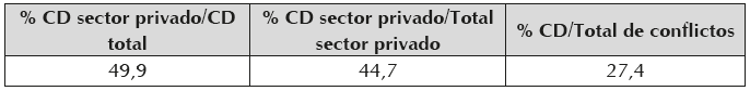 Sin embargo, a pesar de estos cambios también se observan significativas continuidades. Los cuadros 2 a 7 muestran la evolución de diversas medidas porcentuales para conflictos descentralizados entre 1989 y 2003, y entre 2003 y 2009, entendidos como aquellos desarrollados en los ámbitos de empresa o establecimiento, local o provincial. Como se mencionó antes, este contraste de mediciones de la misma variable para diferentes bases es solo indicativo y únicamente sirve a fines de la proposición de hipótesis. Los Cuadros2y3muestran que, entre 1989 y 2003 la proporción de conflictos descentralizados y la proporción de conflictos descentralizados del sector privado aumentan considerablemente cuando solo se consideran los paros. En elCuadro 4se observa que para ambos casos el porcentaje sube de manera muy significativa entre 2003 y 2009. Si se limita la definición de conflictos descentralizados a los de establecimiento, empresa o ámbito local se observa el mismo resultado (véase cuadros5, 6y 7). Puede observarse también la importancia adquirida por estos conflictos en el sector privado que representan el 52,3% del total de conflictos en el sector. Hecha la salvedad acerca de los límites comparativos, las mediciones pueden indicar una continuidad de la tendencia a la fragmentación del conflicto.