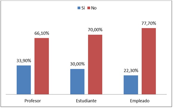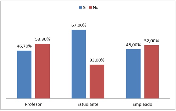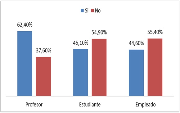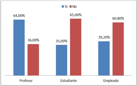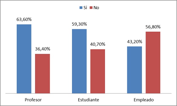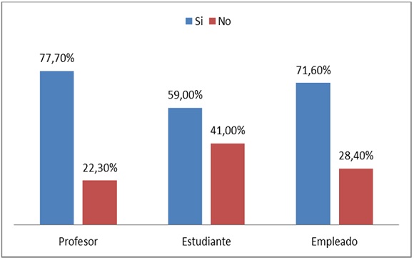 Como puede observarse, para los tres segmentos poblacionales prevalece la televisión como el medio de comunicación idóneo para estar al día en temas políticos: profesores con 86,40%, empleados administrativos con 88,50% y estudiantes con 77,80%, ligeramente por debajo de los anteriores con una media de 84% de uso; en segundo lugar están las revistas y periódicos con una media del 69%;6 si se tiene en cuenta el total, puede decirse que la radio ha quedado desplazada al tercer lugar con una media del 49%, pues en los universitarios el uso de las redes sociales para informarse acerca de la política responde a una media de 55%, siendo significativamente mayor entre los estudiantes, que responden a un 67% de uso, mientras los profesores con un 62,40% privilegian el uso de la radio.