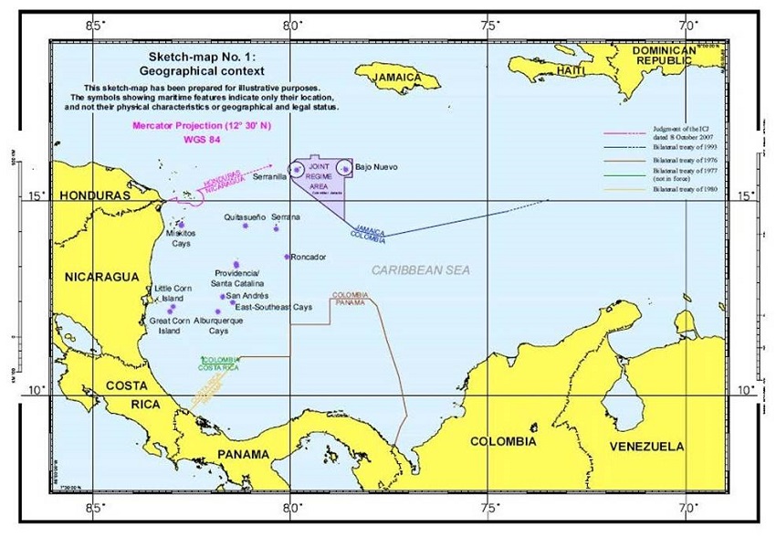Colombia tiene una posición ventajosa en el subcontinente sudamericano al poseer costas sobre dos océanos. Particularmente en el escenario gran caribeño y debido a la ubicación geoestratégica del departamento archipiélago, el país posee un enorme potencial fronterizo al compartir límites con siete naciones, algunas de las cuales se encuentran en disputas limítrofes dada la abundancia de recursos, como reservas pesqueras y petroleras que hacen de esta región un enclave extractivo de suma importancia. La confrontación diplomática más relevante ha sido el diferendo entre Colombia y Nicaragua iniciado en 2001 y resuelto en 2012 por la CIJ, la cual dictaminó una sentencia a favor del último país, otorgándole 75 000 km2 de área marítima en el mar Caribe sudoccidental que anteriormente figuraban bajo la soberanía colombiana. Esto agudizó las tradicionales tensiones entre el Gobierno colombiano y la población raizal.