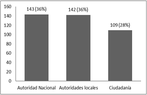 La utilización de actores -en rol de fuentes- como el canciller, ministros y presidente fue agrupada, por generalización, bajo la categoría «Autoridades Nacionales»; actores como los alcaldes, concejales y secretarios regionales ministeriales fueron agrupados, por generalización, como «Autoridades Locales»; e iniciativas y representantes de la sociedad civil, como agrupaciones culturales y religiosas, pescadores, comerciantes y agricultores, fueron categorizadas, por construcción, como «Ciudadanía».3
