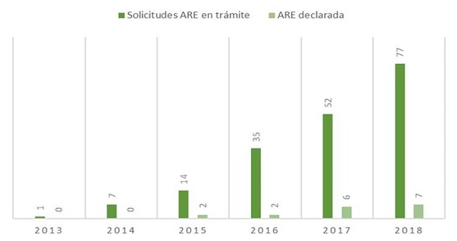 Ahora bien, la selección el mecanismo de ARE responde a la preponderancia que el mecanismo ha ido ganado recientemente. Si bien las ARE existen desde la entrada en vigor del actual código minero, es solo hasta 2013 que se crea una normatividad que especifica el proceso de declaratoria de ARE. En la actualidad, ante la suspensión provisional del Decreto 933 de 2013 (Consejo de Estado, Auto 11001-03-26-000-2014-00156-00 (52506) del 20 de abril de 2016), las ARE son el único mecanismo existente para que los mineros que vienen adelantando sus labores sin contar con título minero puedan hacerse de uno, con excepción de la devolución de áreas (Ley 685 de 2001).