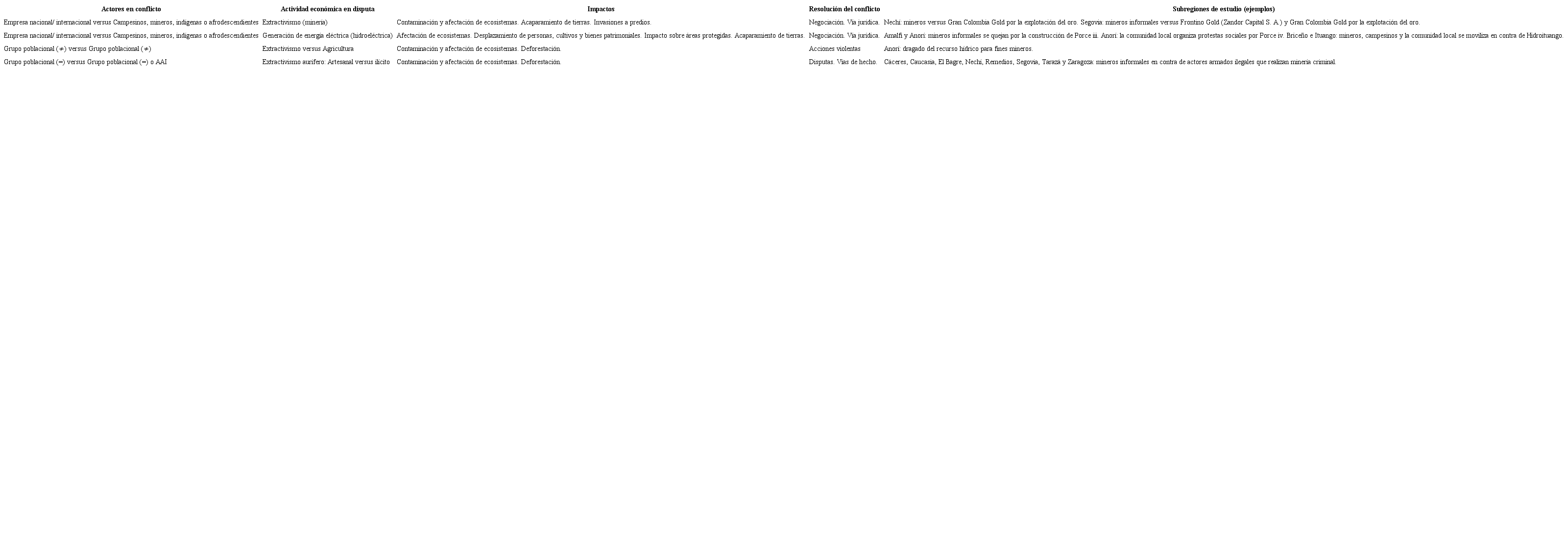 En los 21 municipios que conforman las dos subregiones PATR de estudio se registran 14 conflictos, 9 de ellos relacionados a la minería aurífera y 5 al uso del agua (véase Cuadro 1).