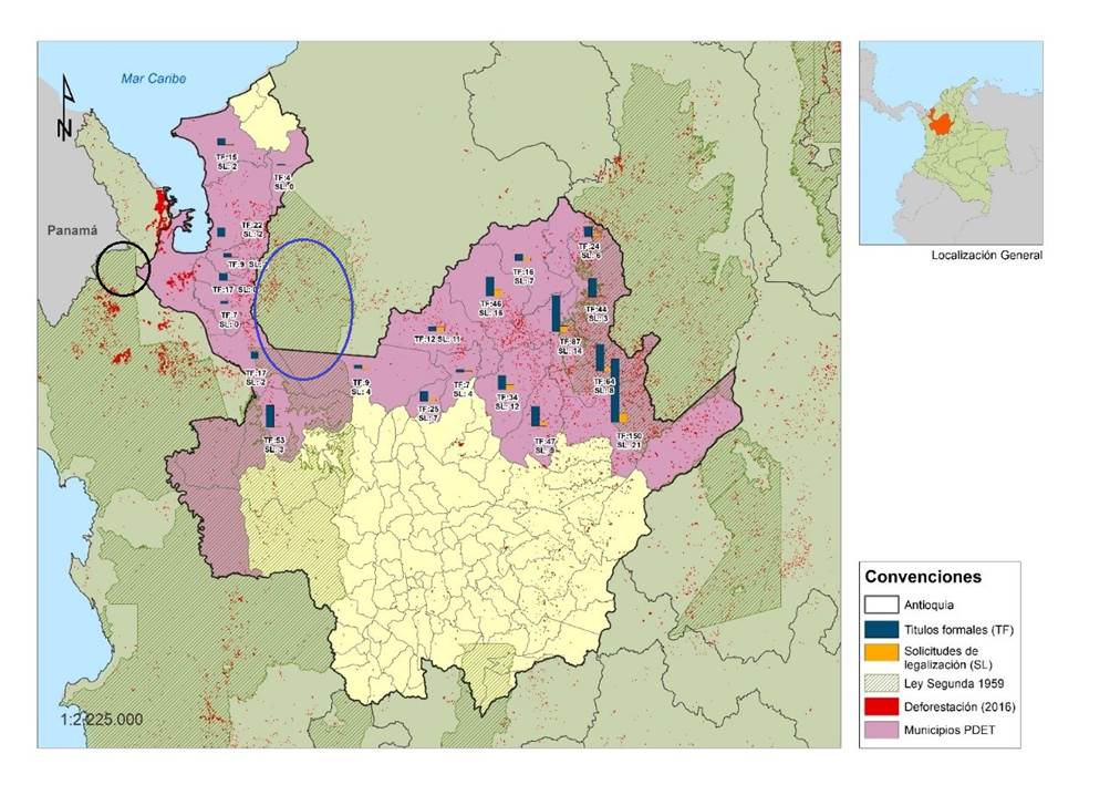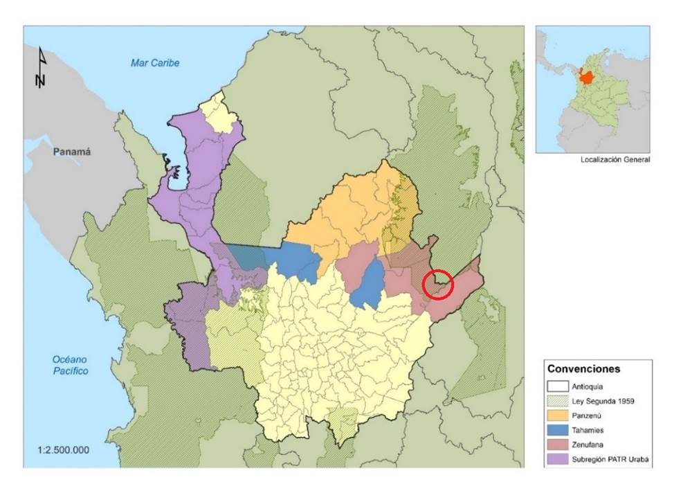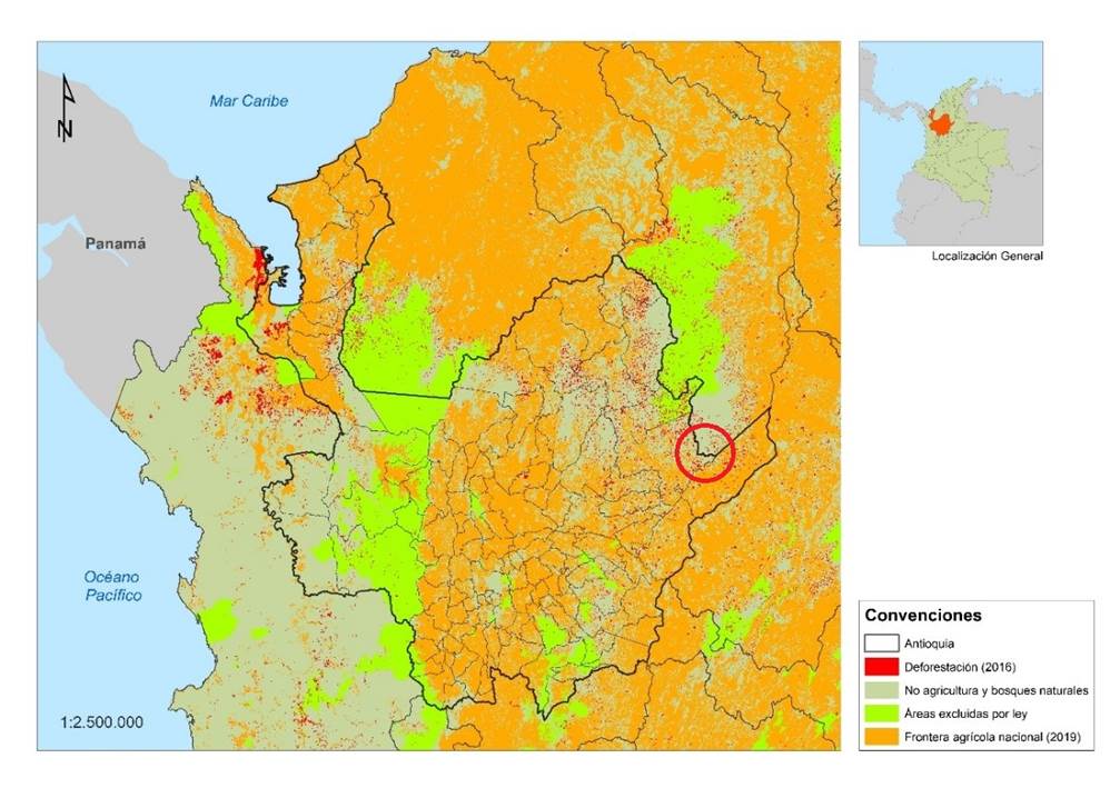 Adicionalmente, se usaron como fuentes primarias documentos resultantes del proceso de formulación de los instrumentos de planificación creados en el Punto 1 de Acuerdo. Las fuentes secundarias analizadas en la investigación fueron las políticas públicas nacionales y departamentales asociadas al tema de estudio, informes del Instituto Kroc, de la MAPP/OEA, de la Oficina de Naciones Unidas contra la Droga y el Delito (UNODC), de la Agencia de Renovación del Territorio, del Instituto de Hidrología, Meteorología y Estudios Ambientales (Ideam), de la Corporación para el Desarrollo Sostenible del Urabá (Corpourabá), de la Corporación Autónoma Regional del Centro de Antioquia (Corantioquia), del Observatorio de Bosques de Antioquia, de la Fundación Paz y Reconciliación (Pares), artículos académicos y datos estadísticos del Departamento Administrativo Nacional de Estadística (DANE), del Departamento Administrativo de Planeación y de la Secretaría de Minas de la Gobernación de Antioquia.