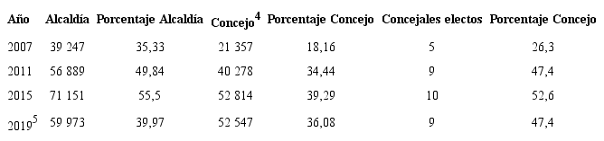 Finalmente, frente a la discusión sobre las consecuencias del acceso de la facción a la Alcaldía planteado por Núñez (2018), para este caso específico se asiste tanto a la tendencia a la continuidad en el poder local -por tres periodos- como a los efectos de arrastre sobre integrantes de la facción que resultaron electos a otros cargos: Elbert Díaz a la Cámara, Ritter López al Senado y Hugo Perlaza a la Asamblea.