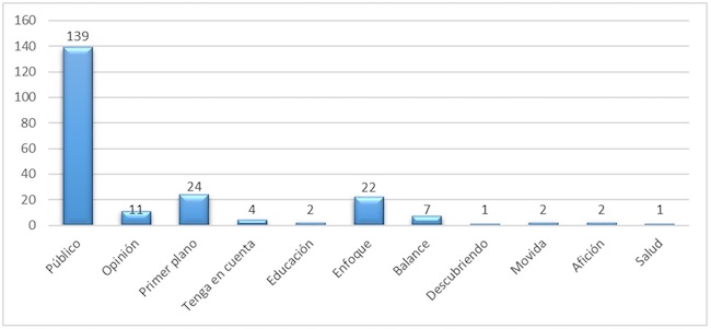 Las noticias políticas en el periódico La Patria se publican en la sección Público. Según la tabulación de los datos, esta fue la sección con más notas (139). Esto demuestra que el diario mantuvo un orden en sus publicaciones, garantizando que el lector encontrara los hechos políticos en las páginas que correspondían (véase Gráfica 2).