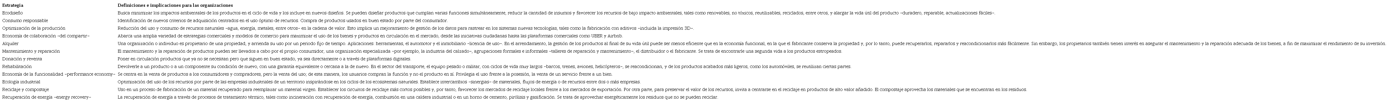 En cuanto a los beneficios ambientales, el movimiento de la EC asume que el aumento de la recirculación de los materiales existentes reducirá la extracción de materiales vírgenes de la ecósfera, así como la cantidad de residuos vertidos en los ecosistemas. Se afirma que este aumento de la eficiencia en el uso de materiales es beneficioso para el medio ambiente (Ellen MacArthur Foundation, 2015). Además, en el contexto reciente de la pandemia del Covid-19, la EC toma fuerza como iniciativa que favorece los bucles más cortos y locales de recursos, y mejora la resiliencia de sistemas de producción y de consumo, manteniendo el bienestar de los individuos, los hogares y las comunidades. Así, la propuesta de la EC tiene varias implicaciones para las organizaciones y los procesos organizativos, tales como territorios o cadenas de valor. Esto presenta una combinación de estrategias y modelos de negocio cuyo objetivo consiste en cerrar los bucles de material para optimizar su uso y reducir el grado de recursos vírgenes consumidos (véase cuadro 1).