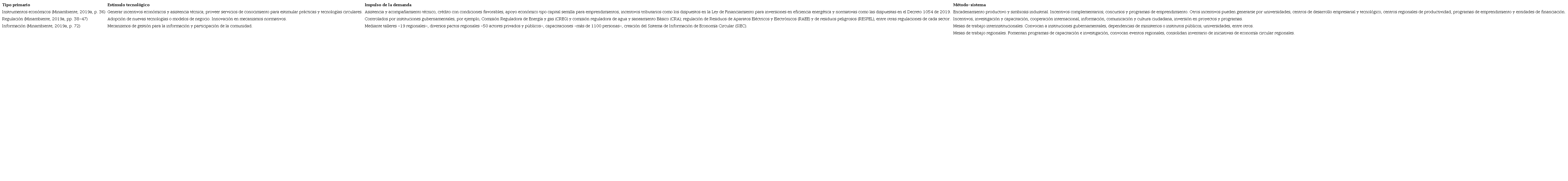 De acuerdo con el informe de Tecnalia (2018), en Colombia se hace énfasis en procesos industriales, pero es necesario mejorar el acceso a las capacidades tecnológicas para los pequeños productores y los informales, de tal manera que los procesos productivos de pequeña escala adquieran el desarrollo y las estrategias tecnológicas y económicas necesarias para el uso eficiente de los recursos, el desarrollo de procesos y productos limpios que permitan garantizar el cierre de ciclos y la creación de nuevos modelos de negocio de la EC.