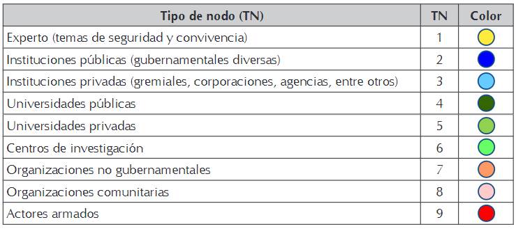 A partir de las respuestas dadas a estas dos preguntas se construyeron nueve categorías que agrupan, según la experiencia del experto, el grado de interacción e incidencia que tiene el tipo de institución o actor social en la gestión de las políticas públicas de seguridad en Medellín (véase Tabla 1).