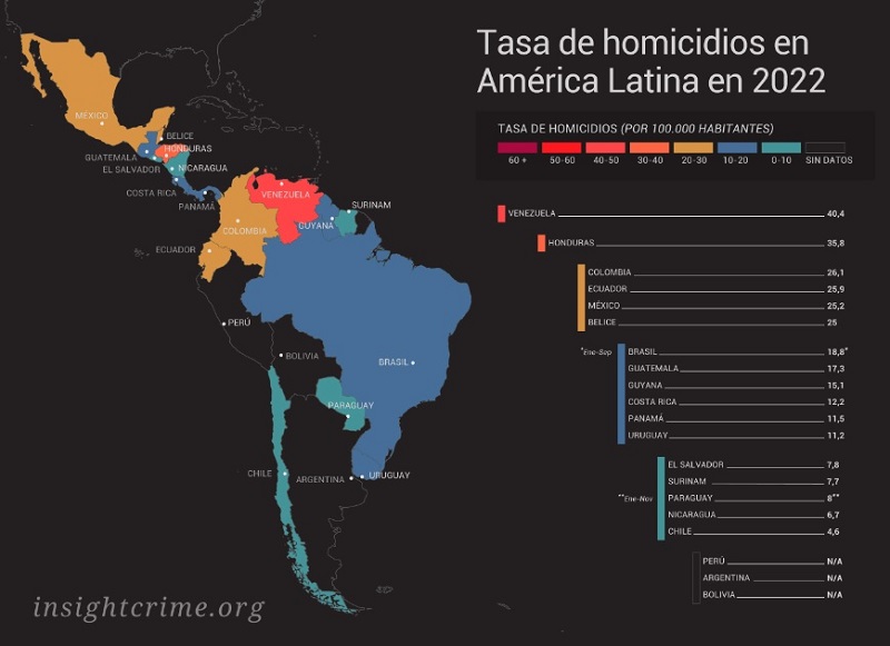 En cuanto a las armas de fuego -el otro combustible de la violencia-, la tenencia por parte de la población civil y, específicamente, por las organizaciones criminales ha producido el aumento en las tasas de mortalidad y de la percepción de inseguridad ciudadana. De acuerdo con Aaron Karp (2018 citado por Álvarez, 2022, p. 68) se calcula que en América Latina existen más de 83 millones de armas de fuego legales e ilegales, la mayoría (84,6%) estaría en manos de civiles, las demás estarían en poder de las fuerzas armadas y de policía de los distintos países. En buena parte de los países de la región, el porcentaje de homicidios cometidos con este tipo de armas es de 71%, mientras que la tasa mundial es de 41% (UNODC, 2012 citado por Instituto Igarapé, 2023).