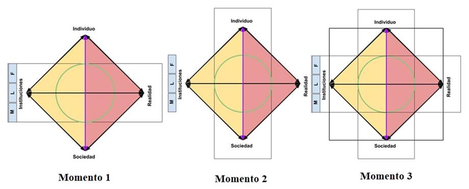 En este orden de ideas, se coincide con el señalamiento de Gino Montenegro y Álvaro Franco (2020) acerca de que las políticas públicas emergen en un contexto histórico y que, por lo tanto, requieren un análisis diacrónico,5 y se toma el esquema procesual de Dussel (2009; 2020) para hacer una interpretación y descripción compleja de la política, situándola en relación con tres momentos o configuraciones a los que Dussel denomina configuraciones diacrónicas de la política, a partir de las cuales se realiza aquí la interpretación decolonial.