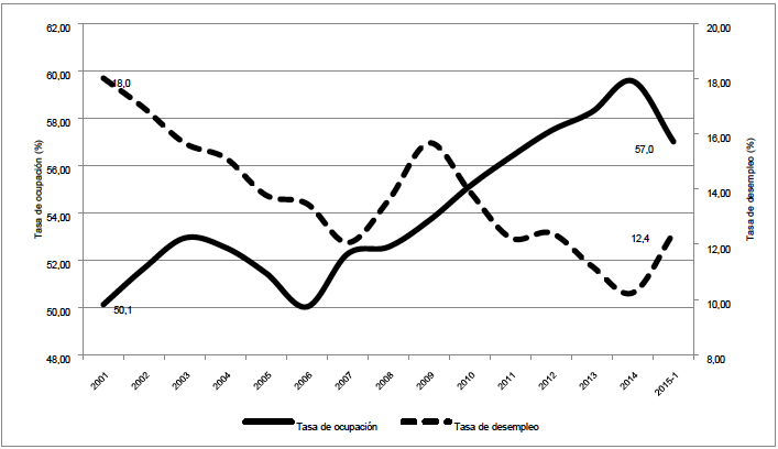 Algunas de las críticas que se hacen a esta relación tienen que ver con la calidad de los empleos, la sostenibilidad de los mismos y el tipo de contrato que se utiliza –término definido–. Por ejemplo, la OCDE (2016, p.18) afirma que el país enfrenta problemas estructurales en el mercado laboral, como el elevado nivel de autoempleo (52 % de la población trabaja como independiente), los contratos a término definido (34 % de los empleados en 2013) y la subcontratación por medio de empresas de servicios temporales (9 % de los empleados que tenían contratos por escrito).