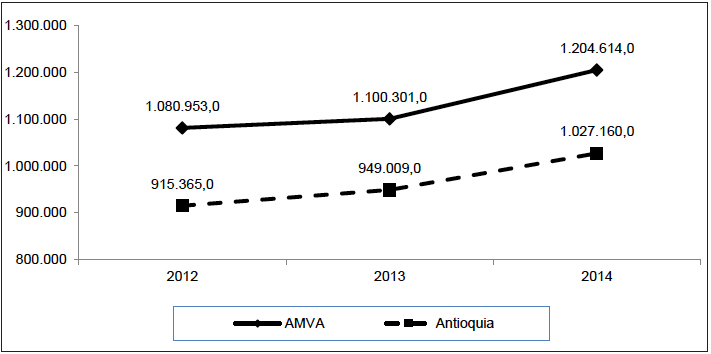 En el caso de Antioquia, se parte por reconocer que es la segunda economía que más contribuye a la producción nacional, después de Bogotá1, y es la primera en exportación cuando se analiza por departamentos. Su dinámica depende, tanto de condiciones internas, como de coyunturas externas, lo que quiere decir que existen diversas razones que inciden sobre su desempeño. Por ejemplo, una disminución de la actividad de la construcción en el país ha afectado a la economía regional; pero, la pasada crisis económica de Estados Unidos de 2008, sumada a la crisis diplomática entre Colombia y Venezuela, también tuvieron un impacto negativo sobre la economía del departamento. Esto refleja que es una economía que se encuentra interrelacionada con el mercado nacional, al mismo tiempo que participa del concierto internacional en doble vía (exportación e importación). En este sentido afirma la CCMA (2015, p.13) que 'la demanda interna, específicamente el consumo de las familias y el gasto público, siguen soportando en gran medida el crecimiento de la economía de Antioquia, ya que las exportaciones y la inversión en sociedades registraron un comportamiento desfavorable'. Los datos recientes reflejan que la actividad económica del departamento de Antioquia está concentrada en cuatro ramas, las cuales explican el 60 % de la producción total del departamento.