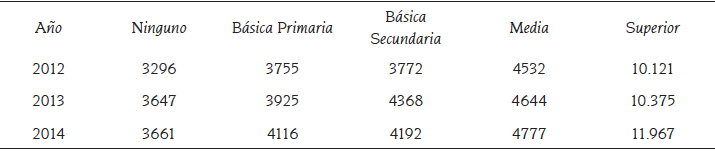 Desagregados estos datos según el nivel educativo y para los mismos años, se encontró que aquellos trabajadores en el AMVA que poseen Educación Superior pasaron en términos nominales de $10.121 a $11.967, mientras los que no tienen ninguna formación son los que registran los menores ingresos por hora y pasaron de $3.296 a $3.661.